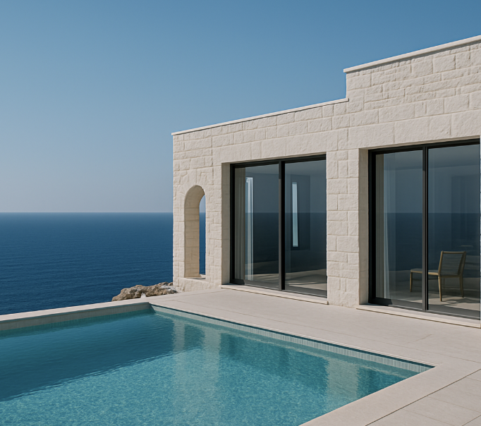 The villa sat on a cliff’s edge, white stone and glass overlooking the endless blue. The private beach below was unreachable by land. It was why they came here — no neighbors, no rules. Just them.