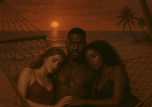 He didn’t answer — he didn’t need to. Dev stood and crossed the room in two long strides. By the time he reached them, Elena turned in the hammock, offering her mouth to him, still breathless from kissing Maia. His hands gripped her waist as he kissed her hard, possessive, hungry.