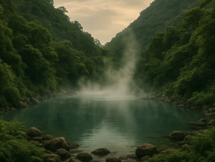 A hidden retreat in the mountains — private cabins, no cell signal, and natural hot springs carved into the earth, steaming quietly under the open sky. Alina and Josh had come to reset. No expectations. Just each other, and quiet.