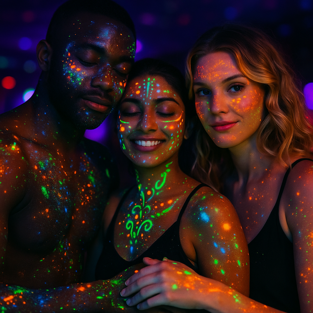 Visual Excitement: Under black lights, paint glows in bold, sensual ways that turn bodies into living canvases.